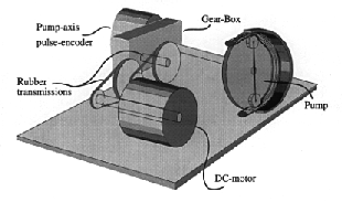 The experimental plant, a peristaltic pump intended for blood-pumping in a dialysis machine, is presented below. The pump element is from Gambro AB in Lund, Sweden.